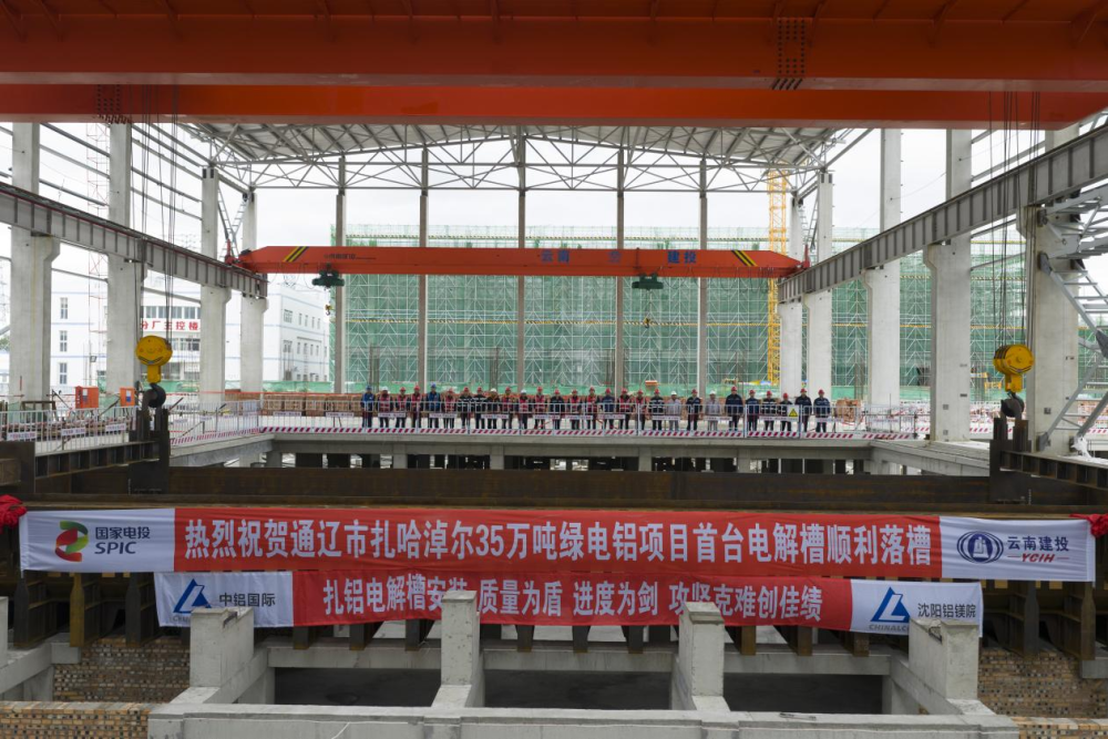 通遼市扎哈淖爾35萬(wàn)噸綠電鋁項(xiàng)目首臺(tái)電解槽順利落槽
