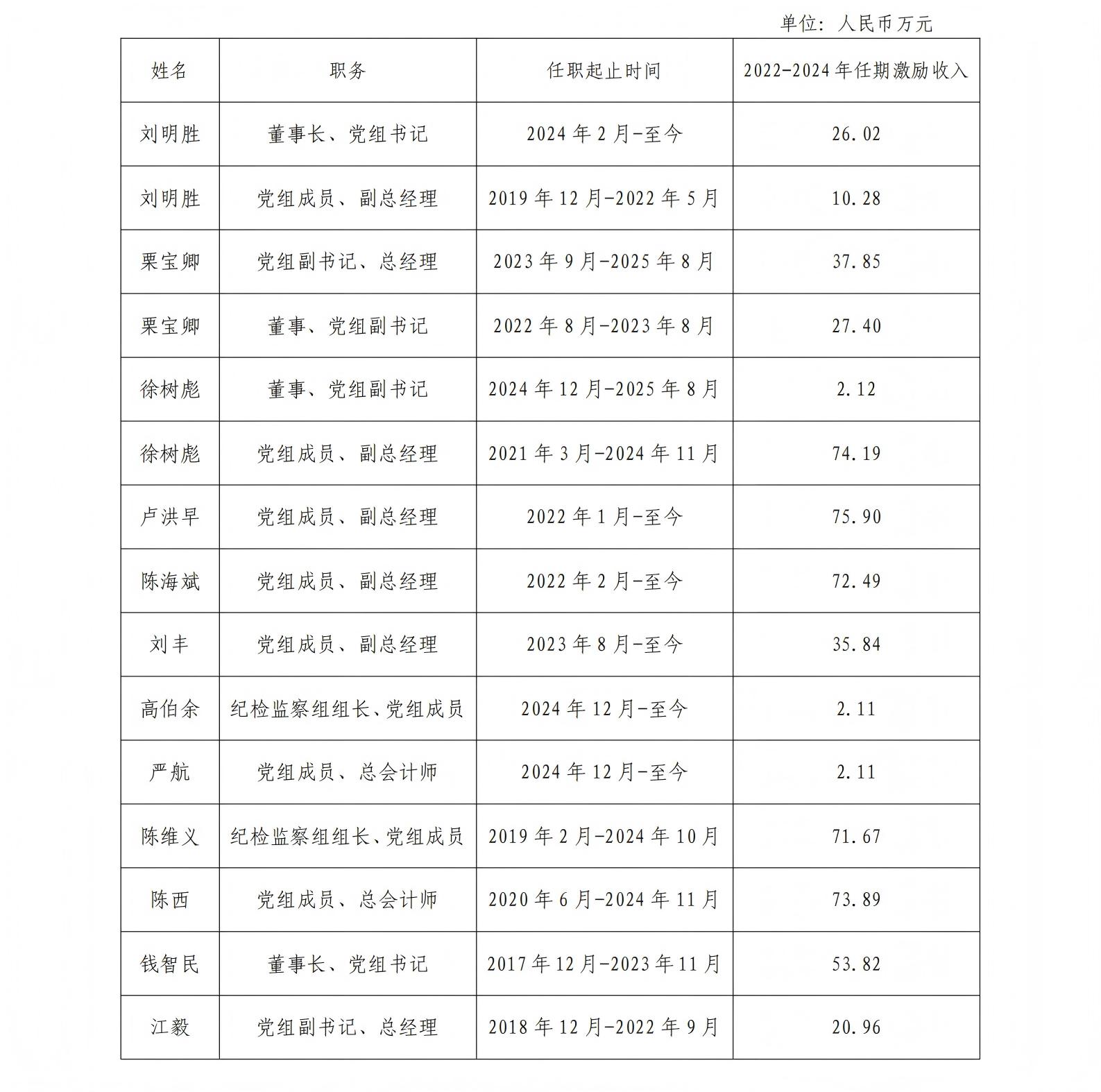 國家電力投資集團有限公司企業(yè)負責人2022-2024年任期激勵收入情況