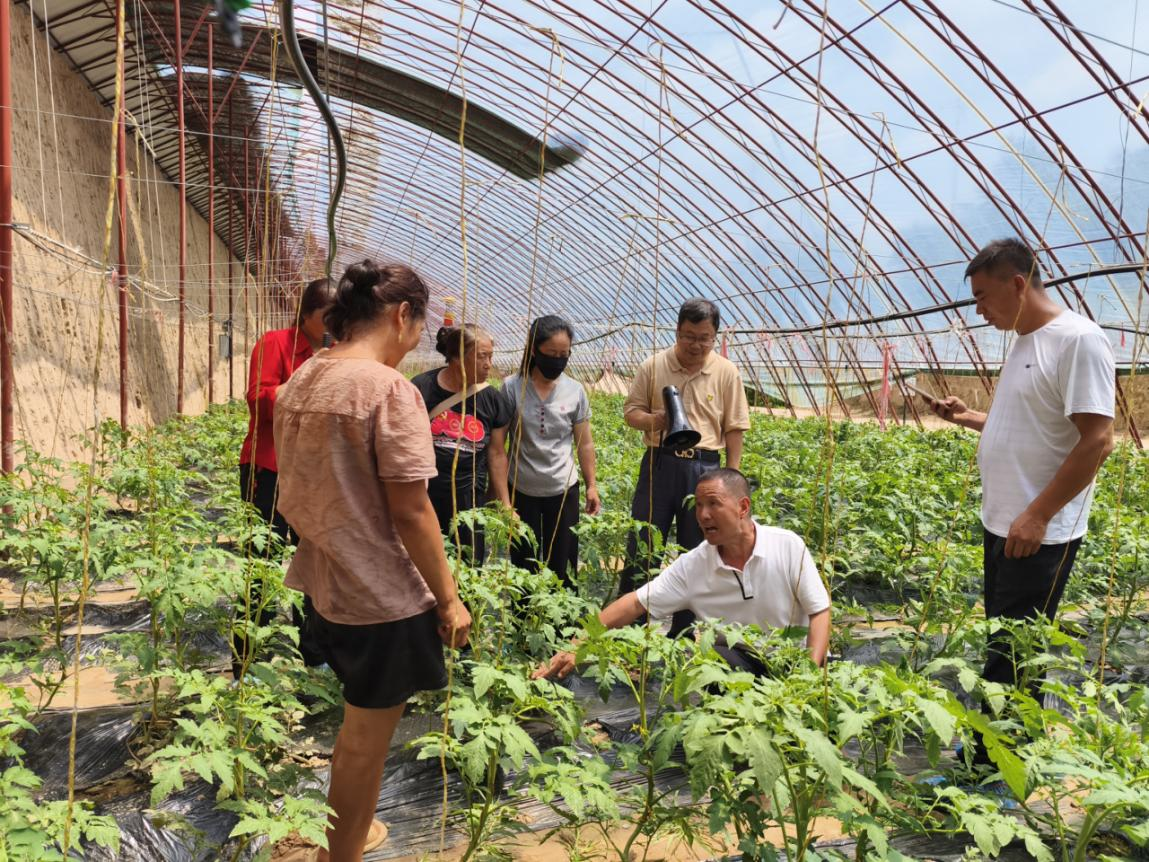 黨校組織中國(guó)農(nóng)科院蔬菜所與當(dāng)?shù)貙<以诖笈锸卟朔N植基地開展現(xiàn)場(chǎng)教學(xué),講解當(dāng)?shù)卮笈锸卟顺R姴∠x害及防治方法。