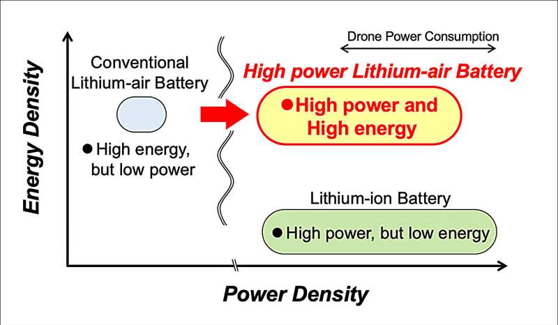 此次研究中,研究團(tuán)隊(duì)開發(fā)了由碳納米管制成的多孔電極,制成高孔隙度碳納米管空氣電極,顯著提高了氧氣的可及性。當(dāng)這種電極與低粘度酰胺基電解質(zhì)結(jié)合時(shí),新設(shè)計(jì)使電流密度提升了十倍。最終,該電池達(dá)到了足以支持輕型無人機(jī)懸停的特定功率密度,不僅能提供極高能量密度,功率性能也顯著提升,現(xiàn)在可為懸停的小型無人機(jī)供電,大幅延長(zhǎng)其飛行時(shí)間。