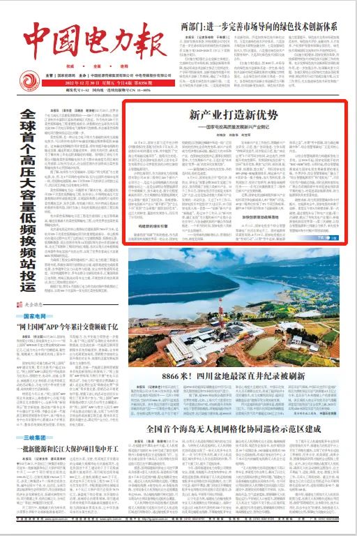12月30日,《中國電力報》第8356期頭版顯著位置刊發(fā)了《新產(chǎn)業(yè)打造新優(yōu)勢 ——國家電投高質(zhì)量發(fā)展新興產(chǎn)業(yè)側(cè)記》。文章報道了國家電投深入學(xué)習貫徹黨的二十大精神,踐行綠色發(fā)展理念,以創(chuàng)新推動新興產(chǎn)業(yè)規(guī)�;哔|(zhì)量發(fā)展。從國內(nèi)到海外、從氫能到儲能,從生物質(zhì)供熱到核能供熱......截至目前,國家電投41家二級單位已建設(shè)運營240個新興產(chǎn)業(yè)項目。以下為報道全文: