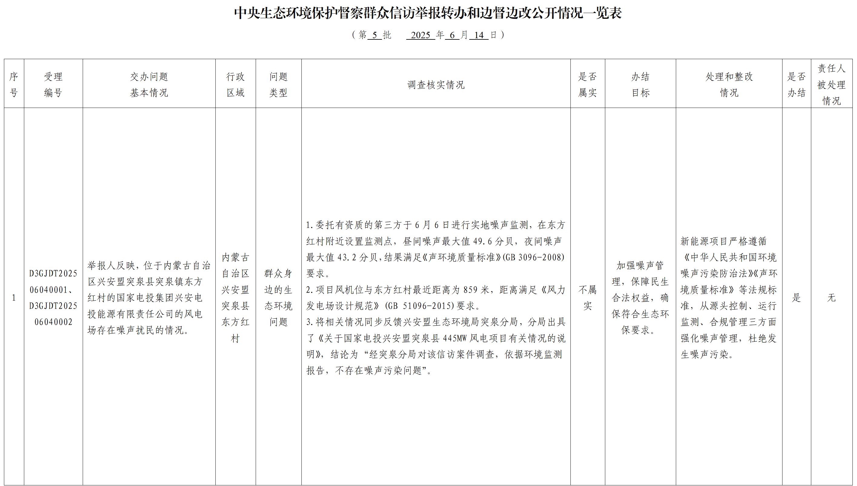 中央生態(tài)環(huán)境保護督察群眾信訪舉報轉辦和邊督邊改公開情況一覽表(第五批)