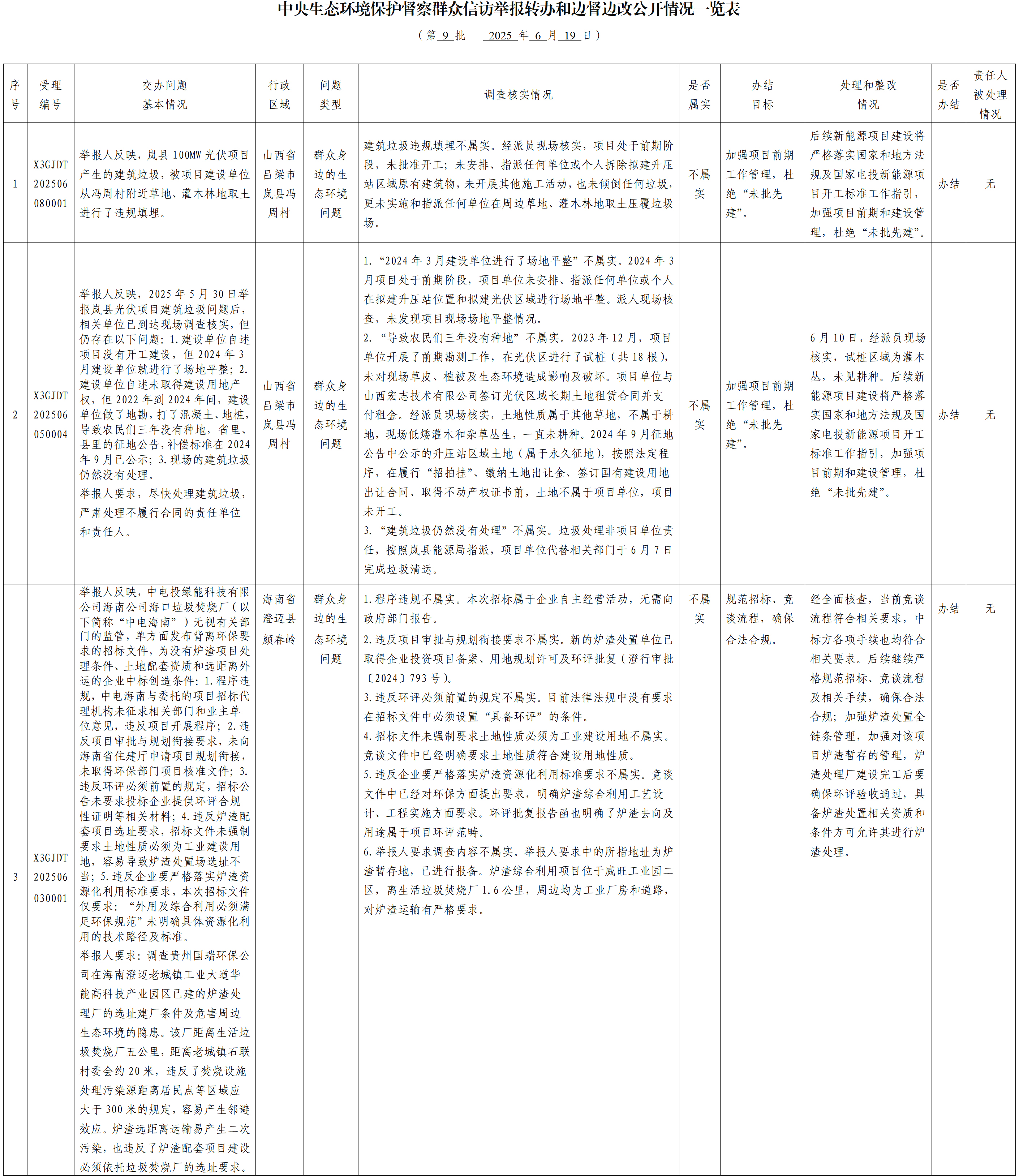 中央生態(tài)環(huán)境保護督察群眾信訪舉報轉辦和邊督邊改公開情況一覽表(第九批)